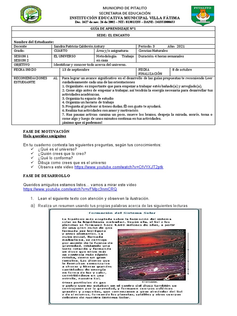 SESION 1 EL UNIVERSO Metodología: Trabajo Duració n: 4 horas semanales