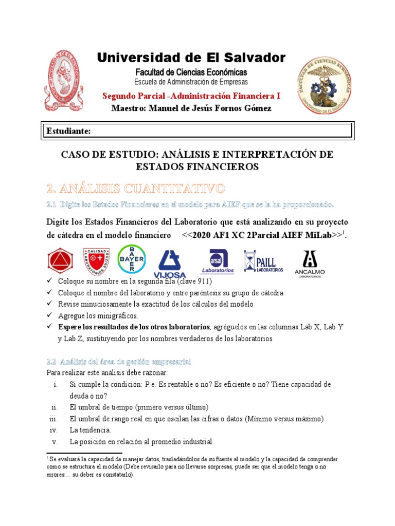 de cátedra en el modelo financiero <<2020 AF1 XC 2Parcial AIEF MiLab>>1.