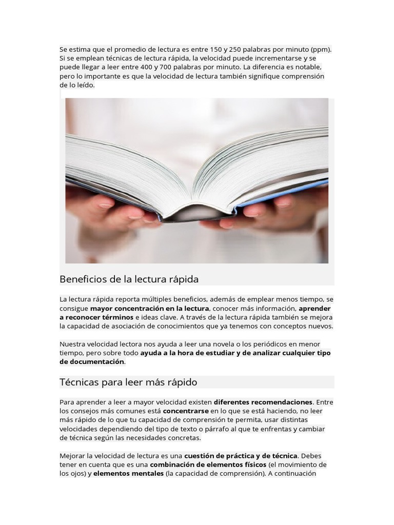 Si se emplean técnicas de lectura rápida, la velocidad puede incrementarse y se