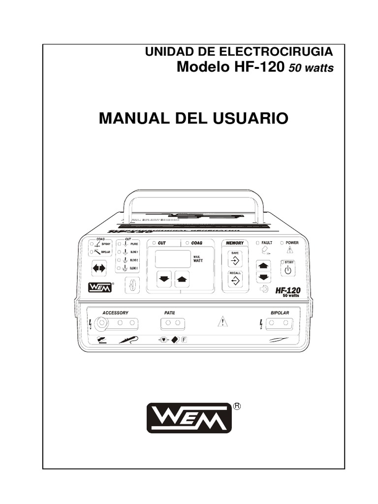 el Bisturí Electrónico Modelo HF-120 50 watts, cuanto a su operación, mantenimiento,