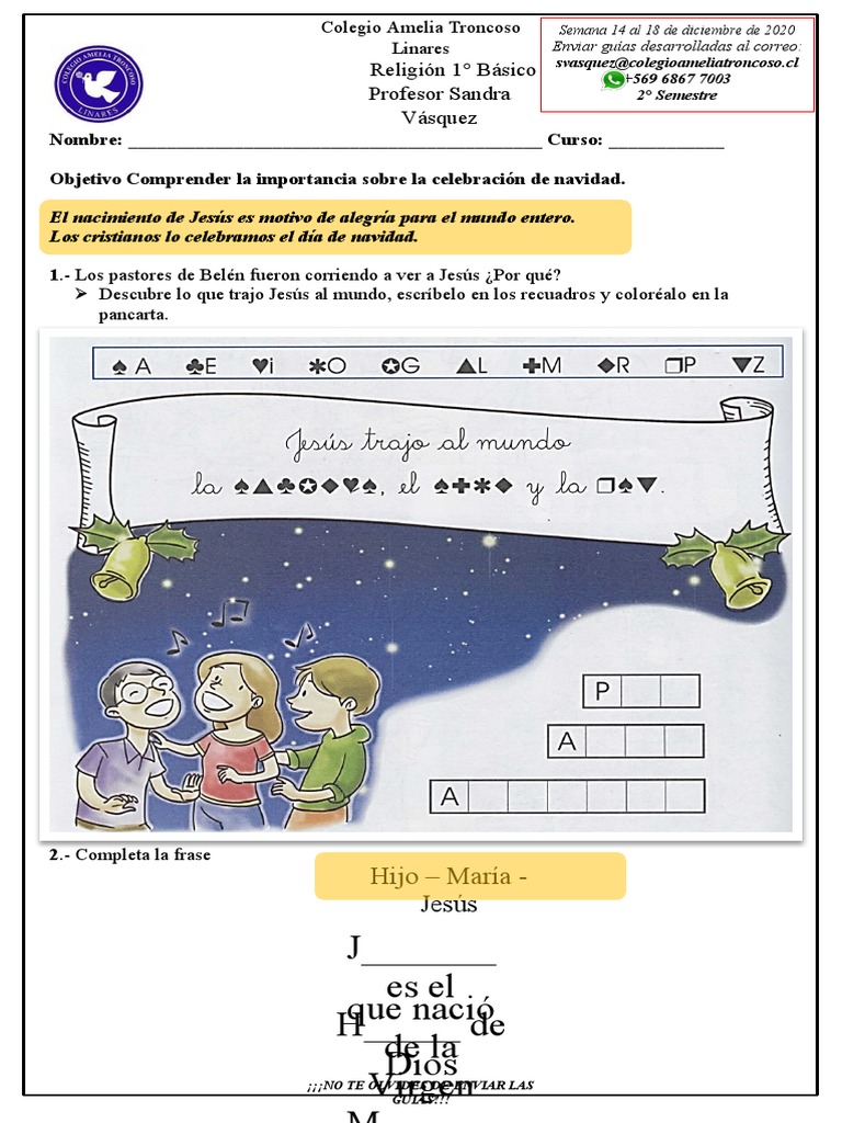 Descubre lo que trajo Jesús al mundo, escríbelo en los recuadros y coloréalo en la