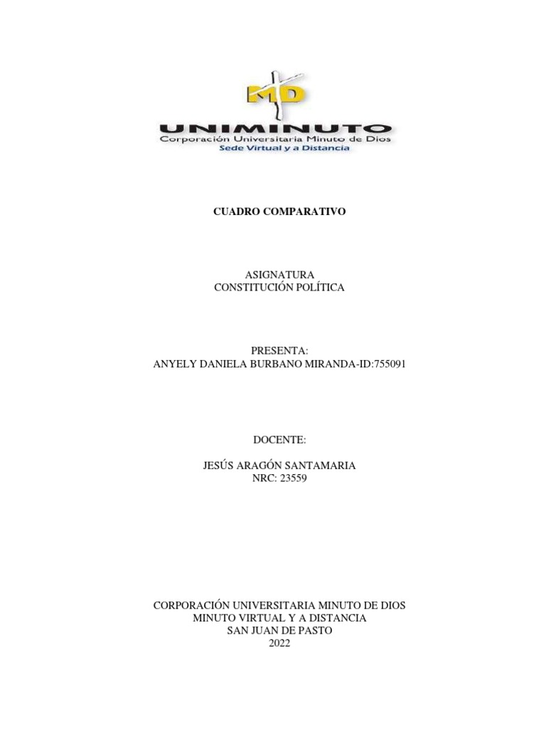 CUADRO COMPARATIVO CONSTITUCIÓN POLÍTICA