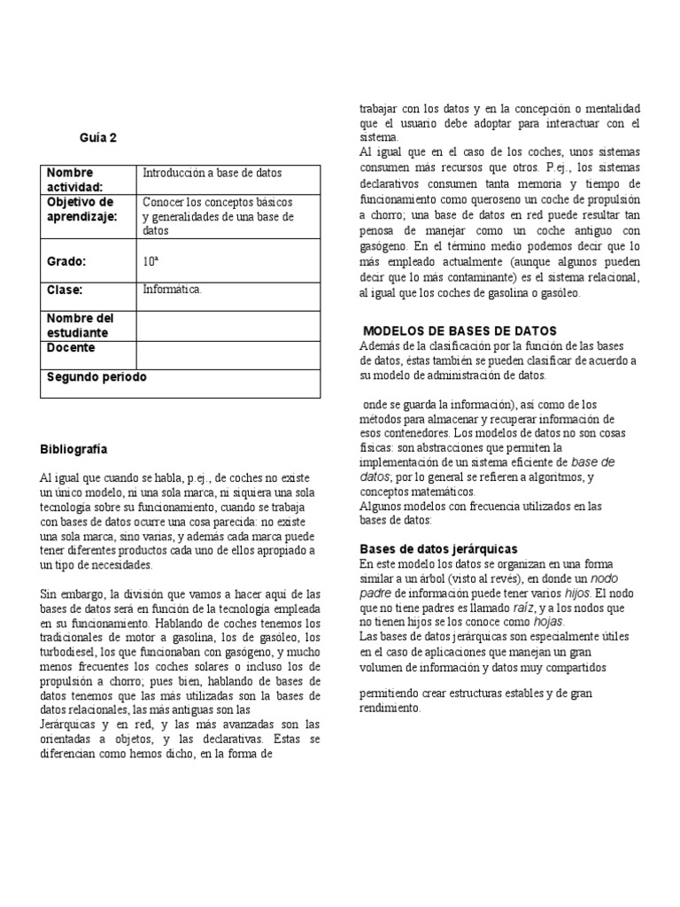 aprendizaje: y generalidades de una base de a chorro; una base de datos en red puede resultar tan