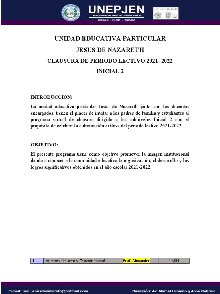 programa virtual de clausura dirigido a los subniveles Inicial 2 con el