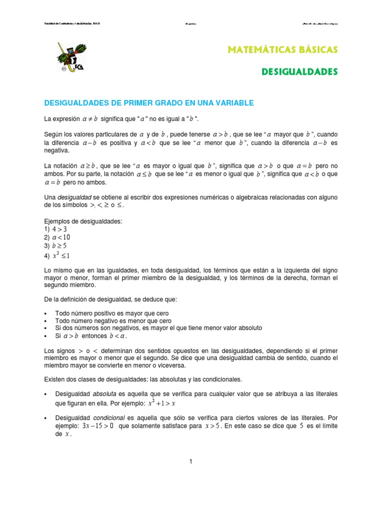 Facultad de Contaduría y Administración. UNAM Desigualdades Autor: Dr. José Manuel Becerra Espinosa