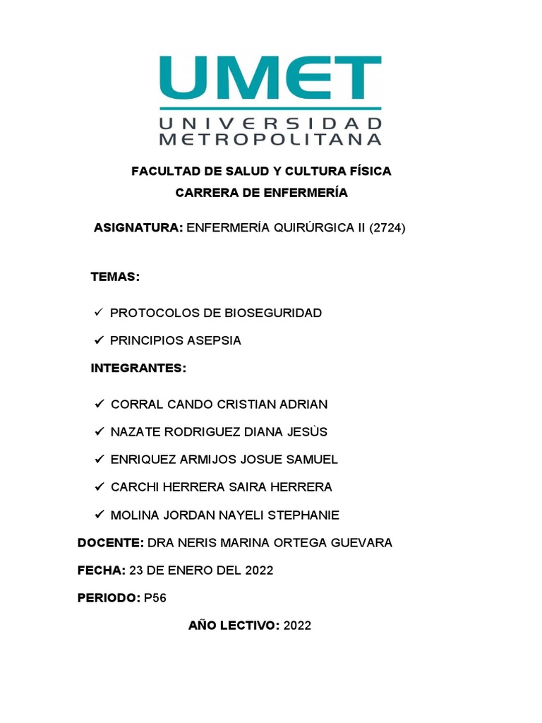 PERIOPERATORIO. (14 PRINCIPIOS DE ASEPSIA Y ANTISEPSIA).