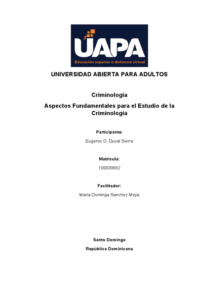 Interpreta los aspectos fundamentales de la Criminología para explicar los