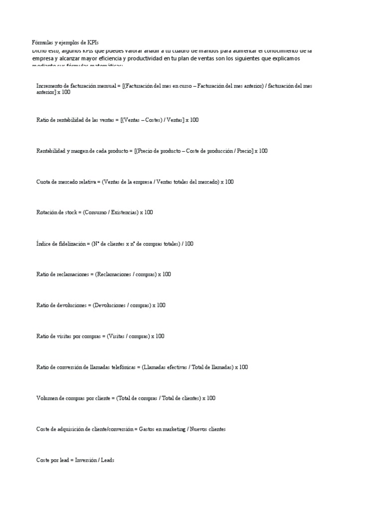 Fórmulas y ejemplos de KPIs