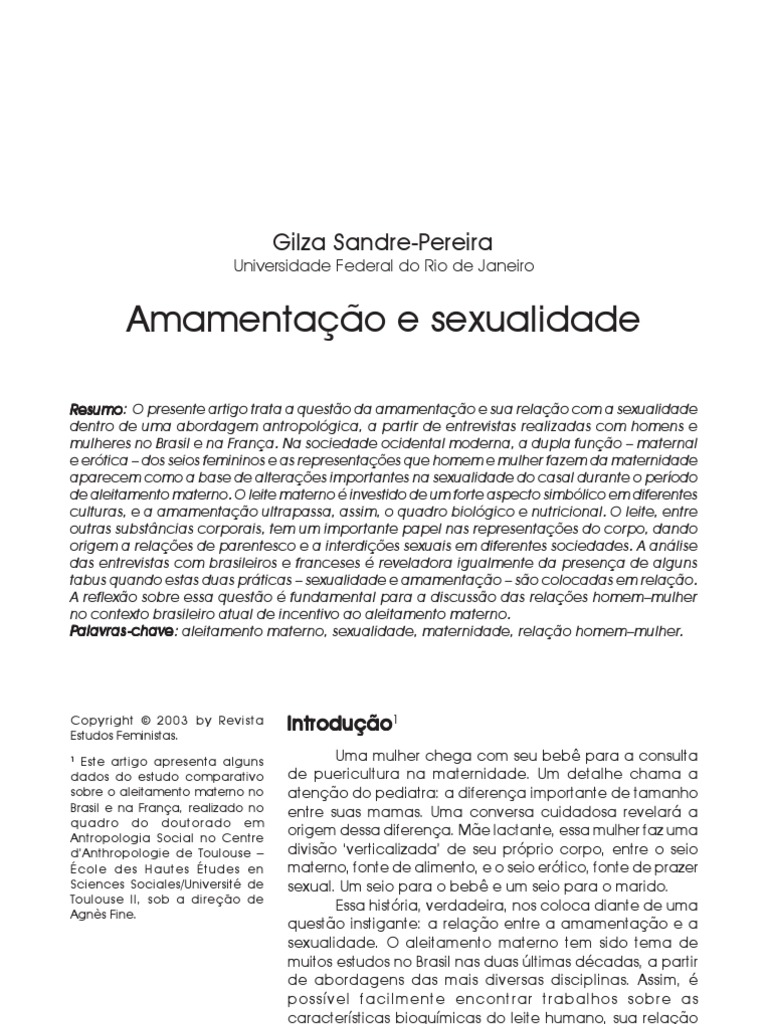 alavras-chave: aleitamento materno, sexualidade, maternidade, relação homem–mulher.