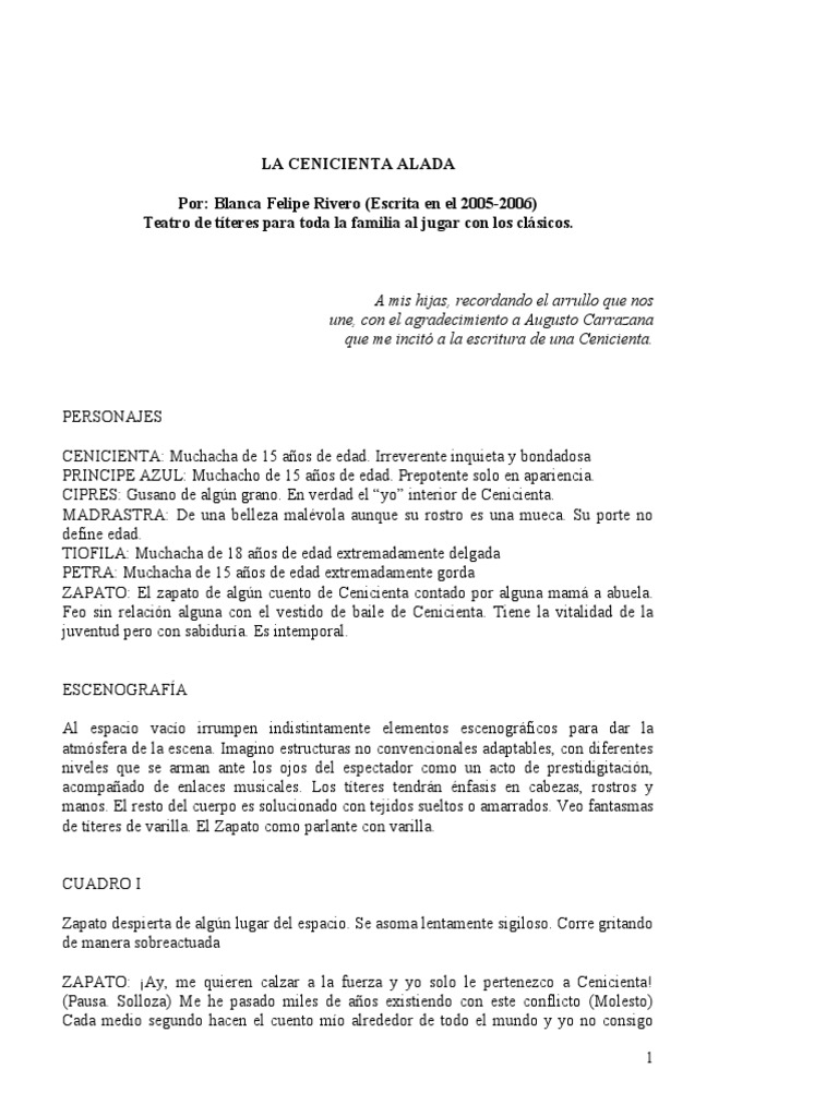 Cenicienta alada (Al público) ¿Tú eres Cenicienta? Tú no, pero tú sí, porque yo soy tu