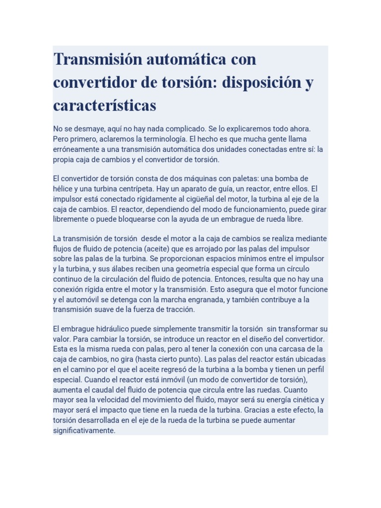 convertidor de torsión ya mencionado anteriormente. Aunque, debe tenerse en