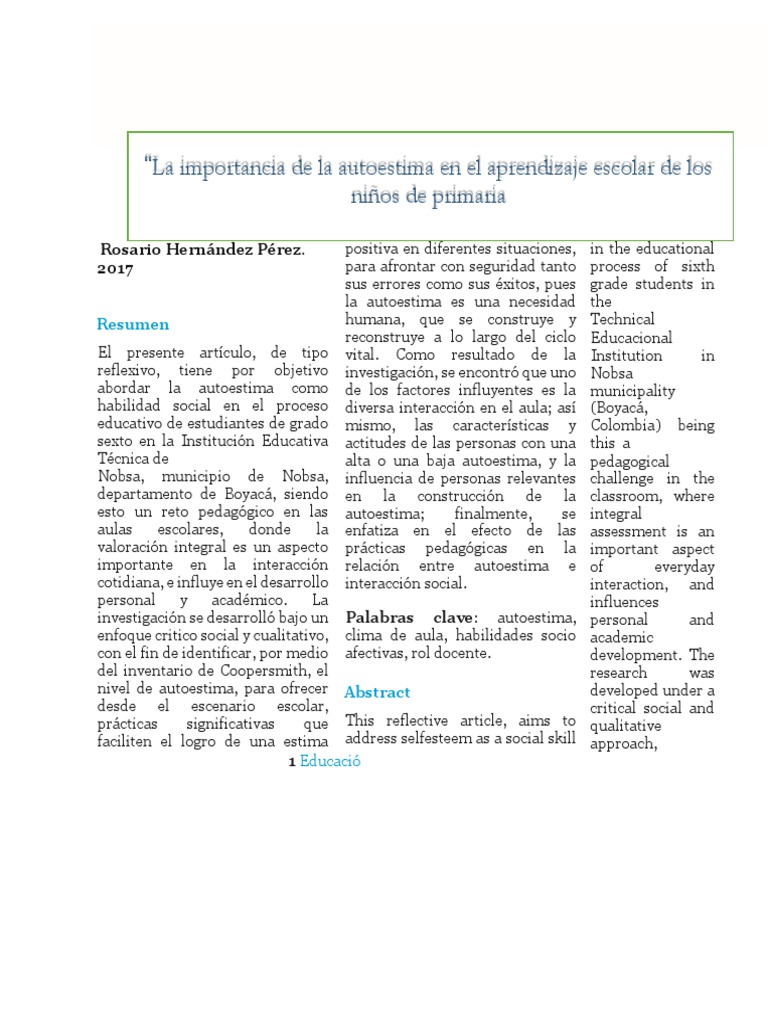 Muñoz, L. (2011). Autoestima, Factor clave en el éxito escolar: Relación