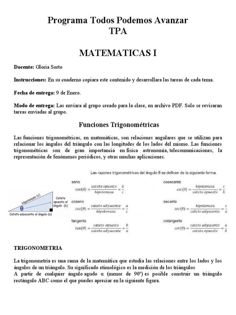 relacionar los ángulos del triángulo con las longitudes de los lados del mismo. Las funciones