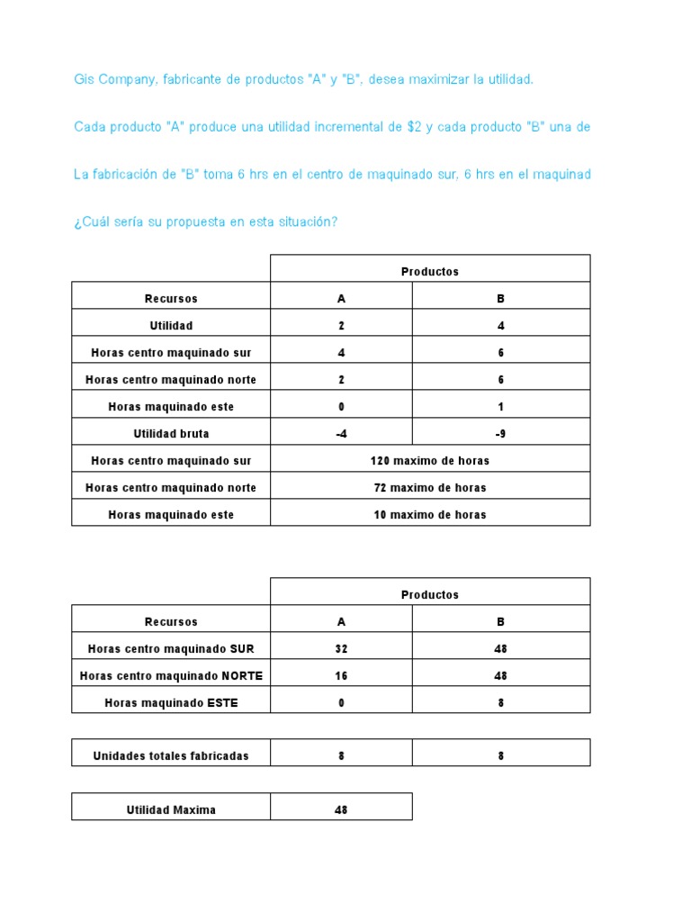 Gis Company, fabricante de productos "A" y "B", desea maximizar la utilidad.