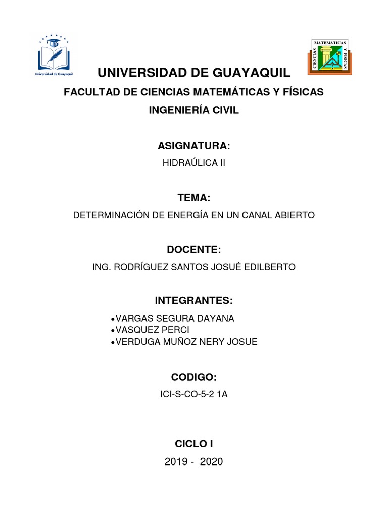 DETERMINACIÓN DE ENERGÍA EN UN CANAL ABIERTO