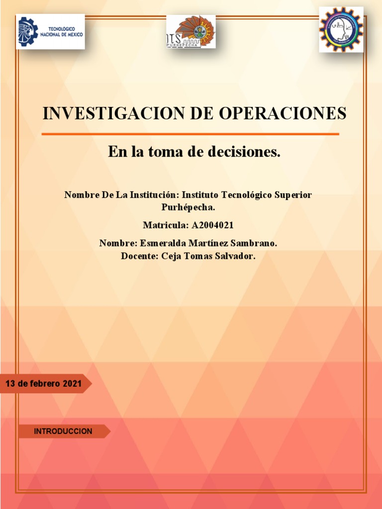 La investigación de operaciones se puede interpretar como la toma de decisiones,
