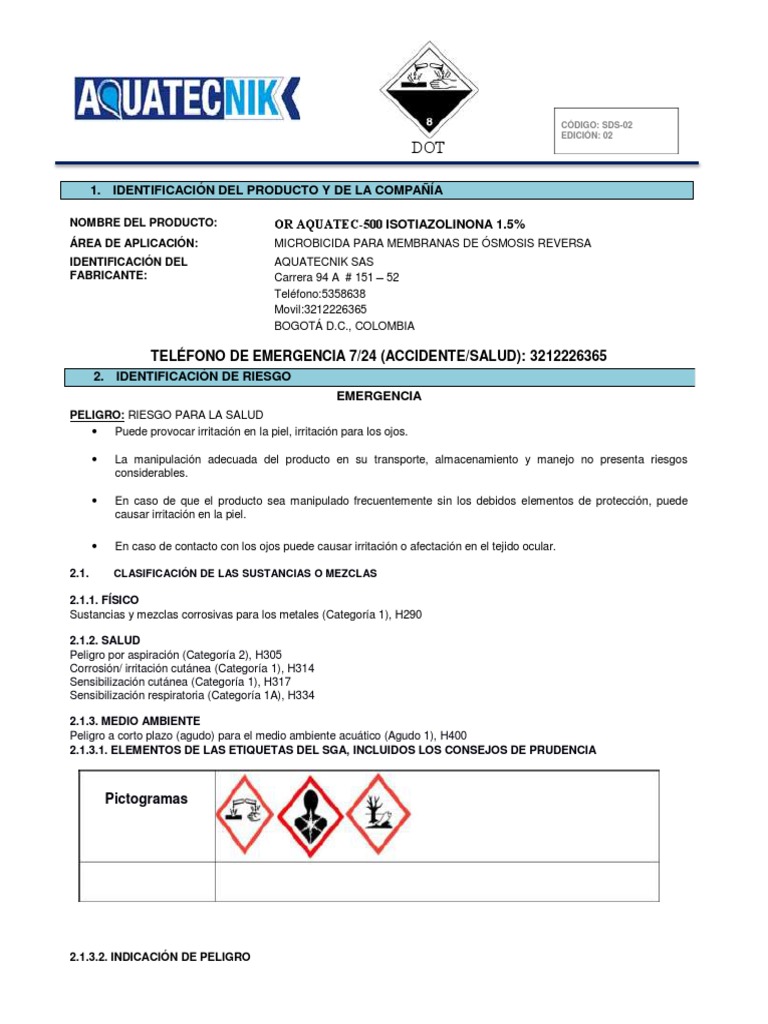 NOMBRE DEL PRODUCTO: OR AQUATEC-500 ISOTIAZOLINONA 1.5%