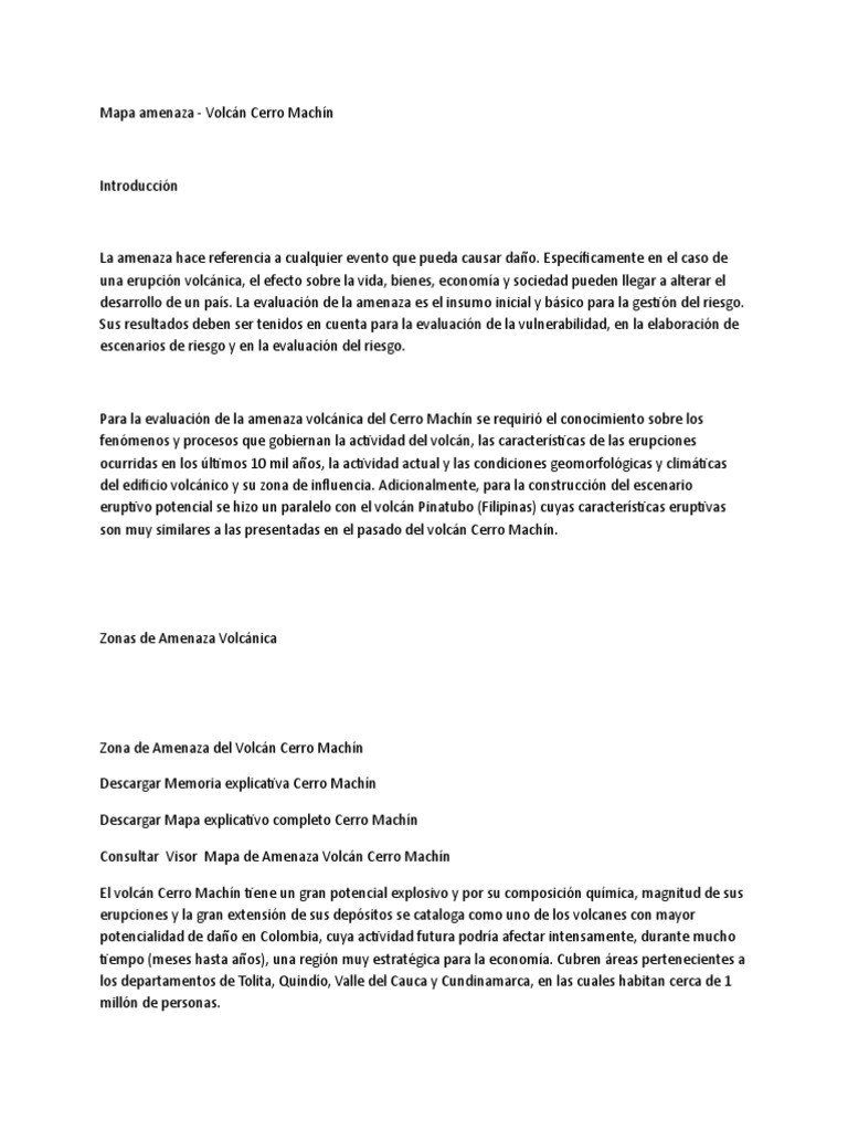 Zona de Amenaza del Volcán Cerro Machín
