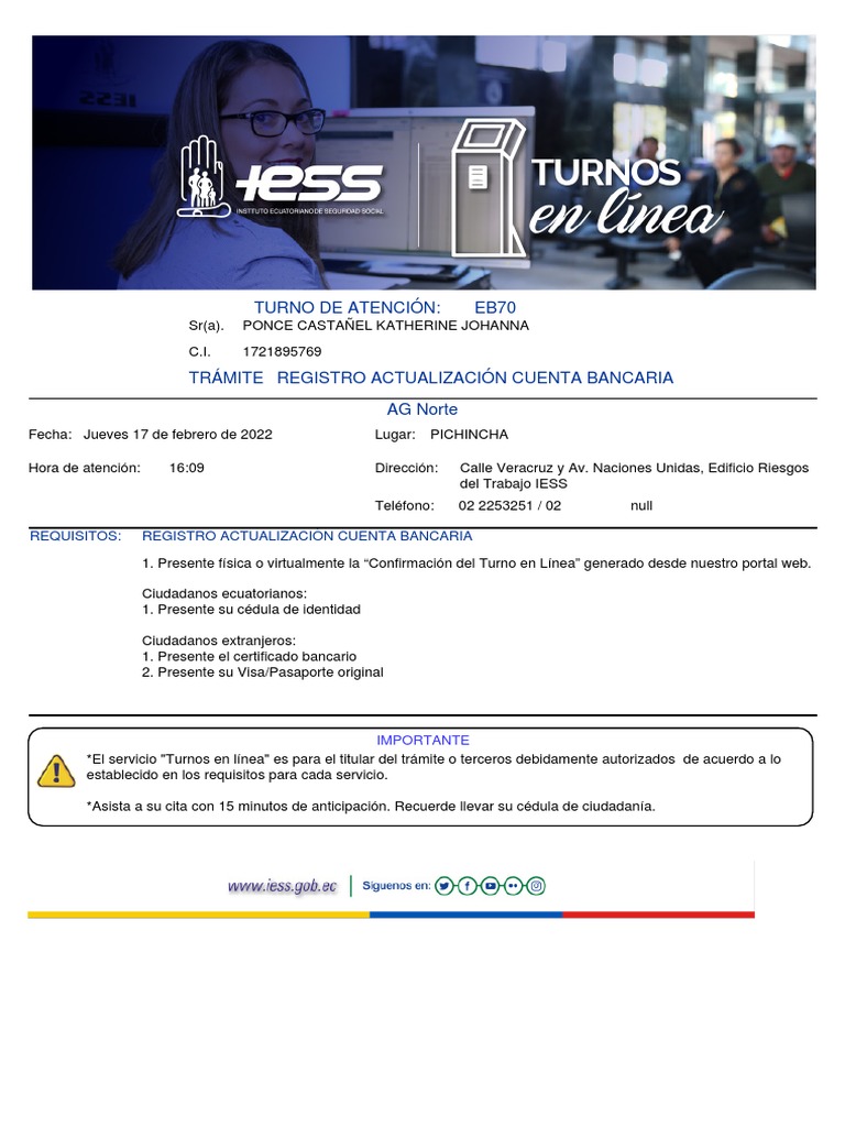1. Presente física o virtualmente la “Confirmación del Turno en Línea” generado desde nuestro portal web.
