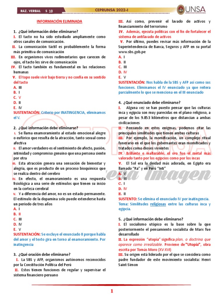 7. Marque la oración que debe eliminarse: 9. Marque el enunciado a eliminar.