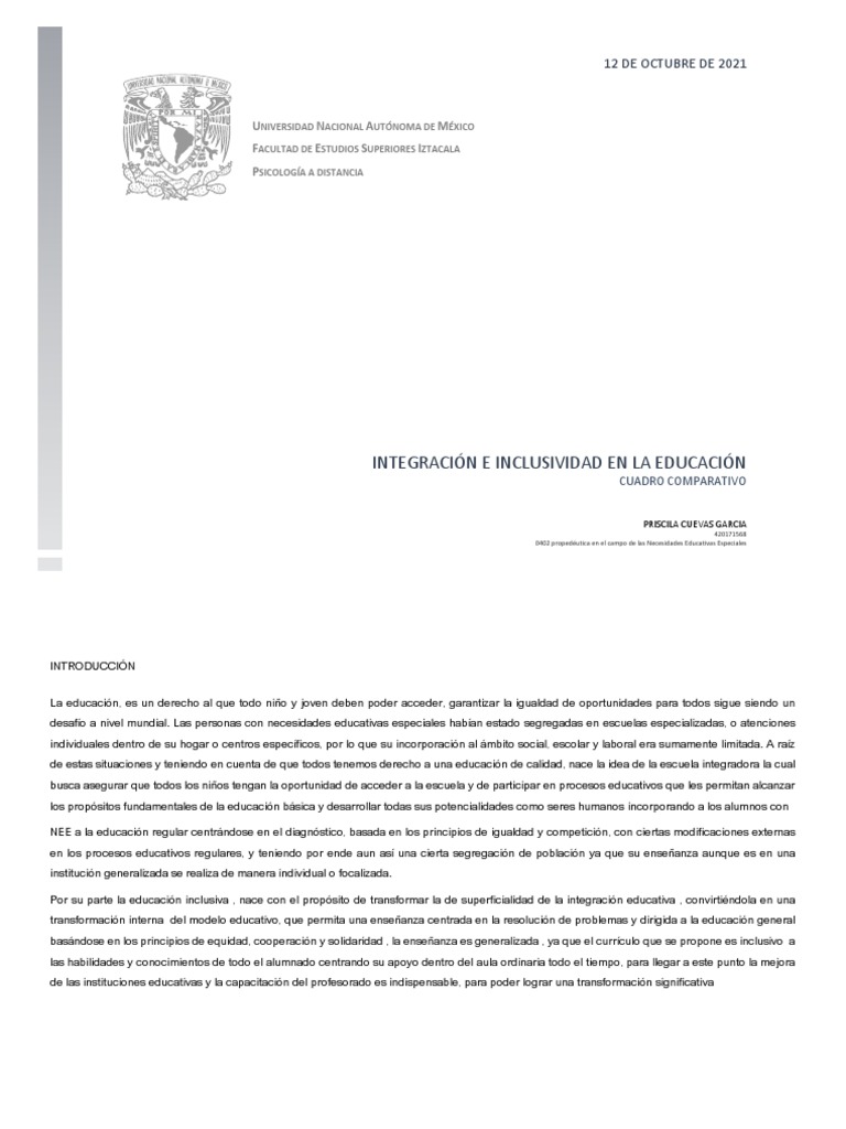 La integración educativa es de cierta forma segregadora, por lo general los La inclusión educativa adapta el currículo normal, a un currículo inclusivo que