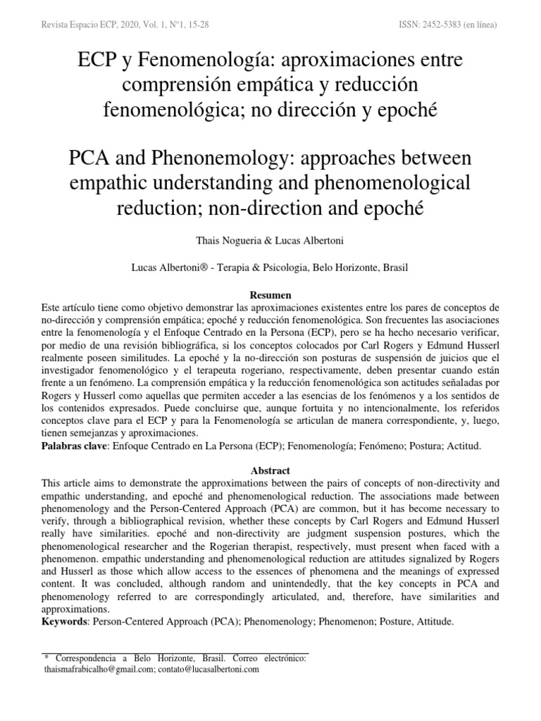 entre la fenomenología y el Enfoque Centrado en la Persona (ECP), pero se ha hecho necesario verificar,