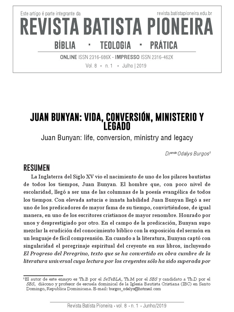 gran predicador bautista, Juan Bunyan. Por todo lo anterior, en este escrito