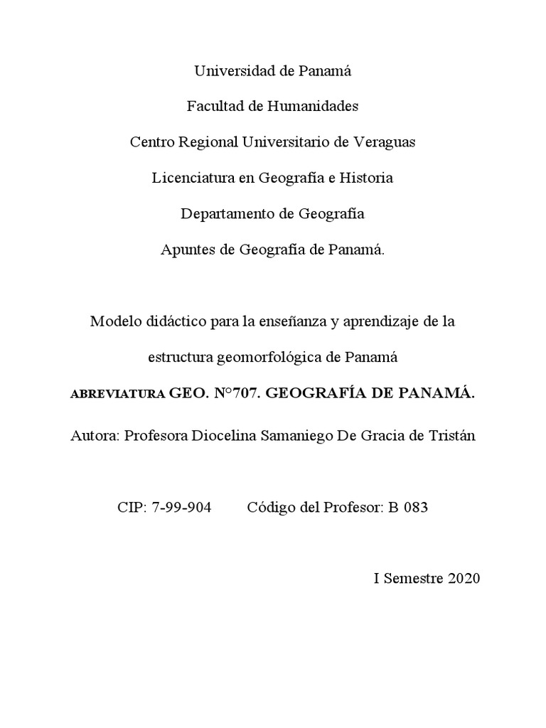 Modelo didáctico para la enseñanza y aprendizaje de la estructura geomorfológica de Panamá............2