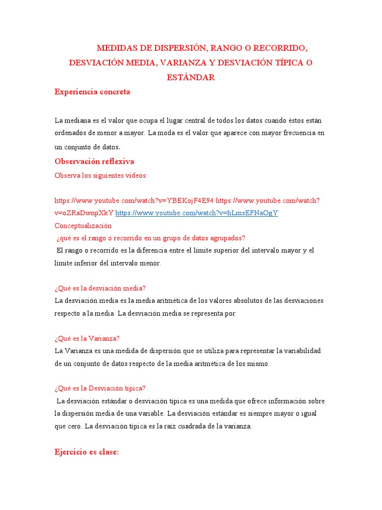 MEDIDAS DE DISPERSIÓN, RANGO O RECORRIDO,
