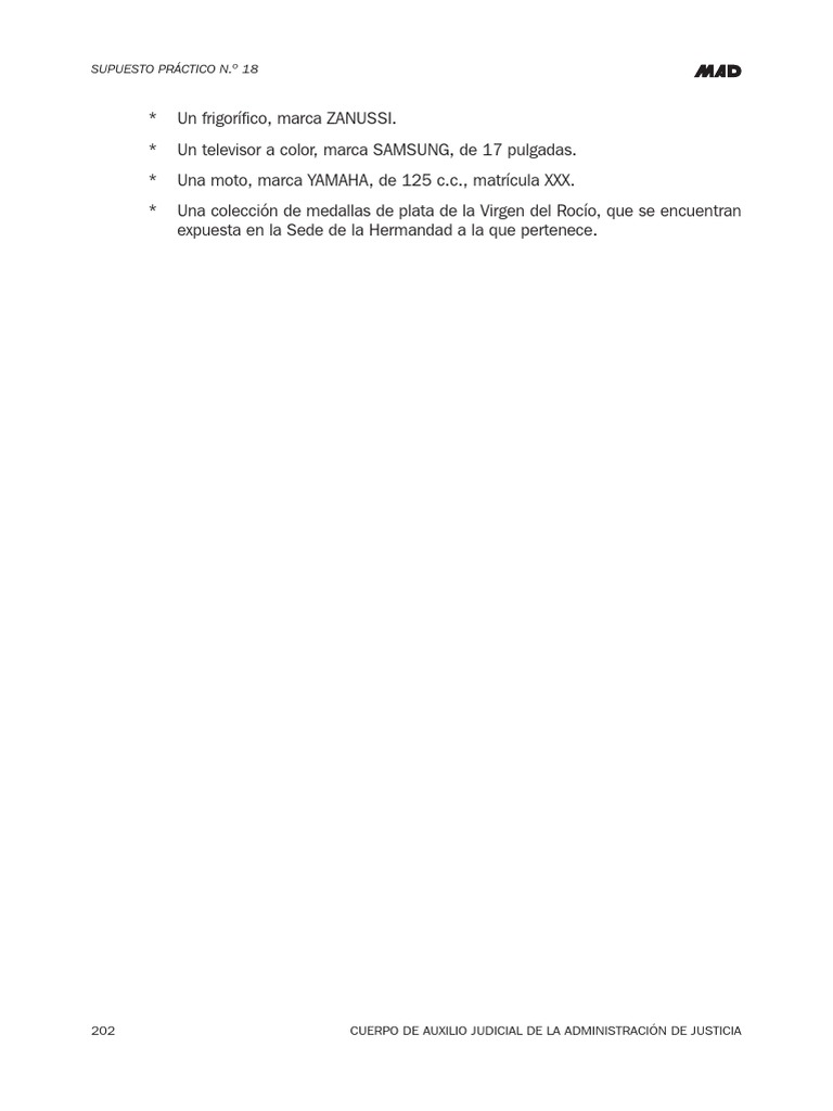 * Una moto, marca YAMAHA, de 125 c.c., matrícula XXX.
