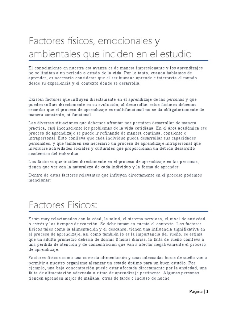 Los factores que inciden directamente en el proceso de aprendizaje en las personas,