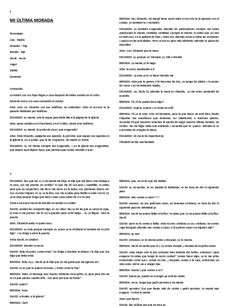 EDUARDO: Brenda tu novio. BRENDA: David recuerda que tú y yo somos templo y morada del espíritu santo.