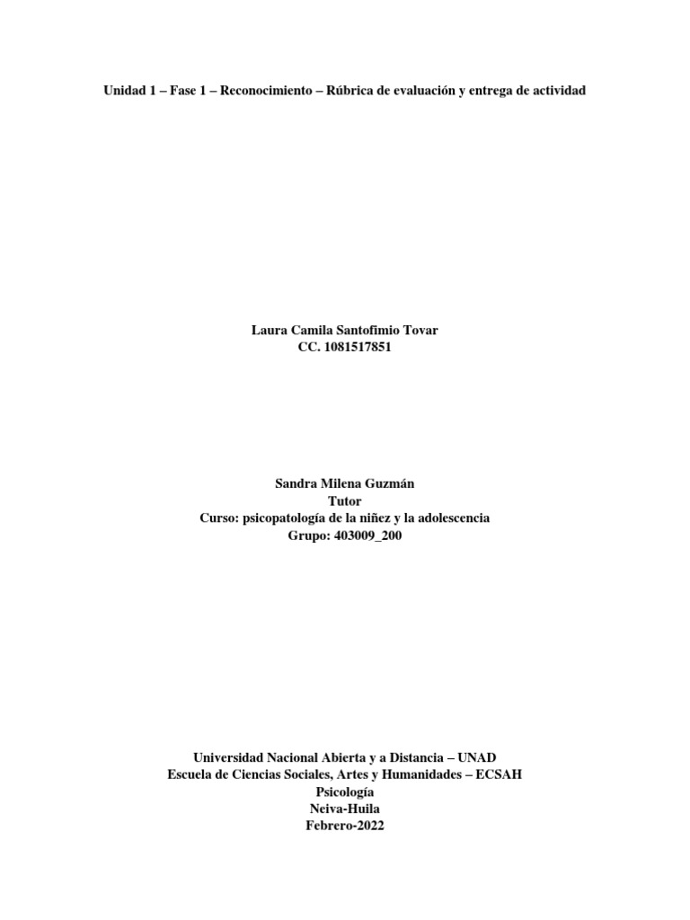 Unidad 1 – Fase 1 – Reconocimiento – Rúbrica de evaluación y entrega de actividad