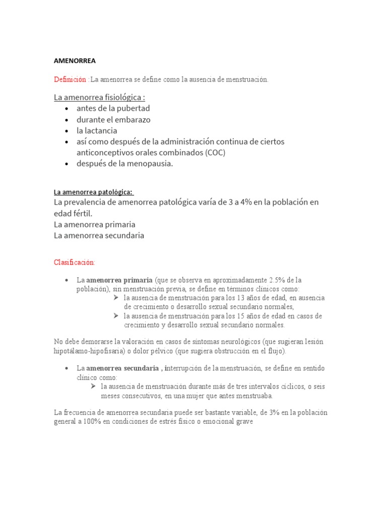 Definición :La amenorrea se define como la ausencia de menstruación.
