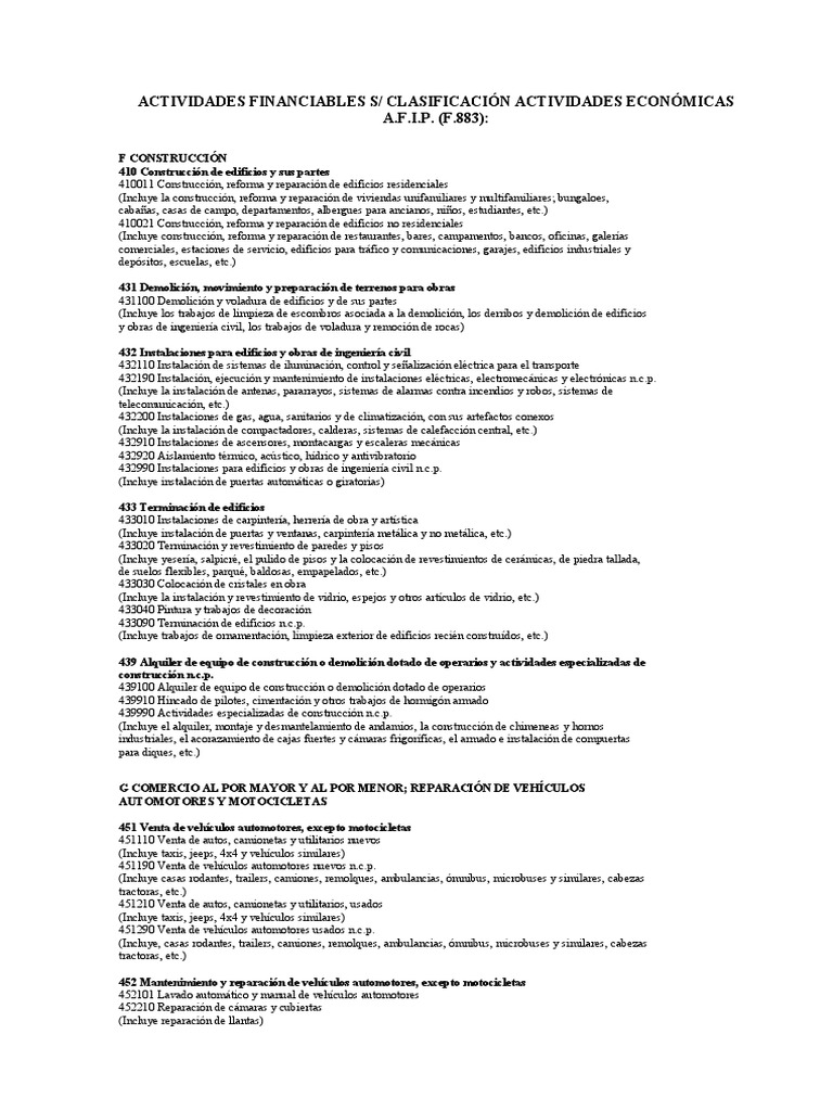 ACTIVIDADES FINANCIABLES S/ CLASIFICACIÓN ACTIVIDADES ECONÓMICAS