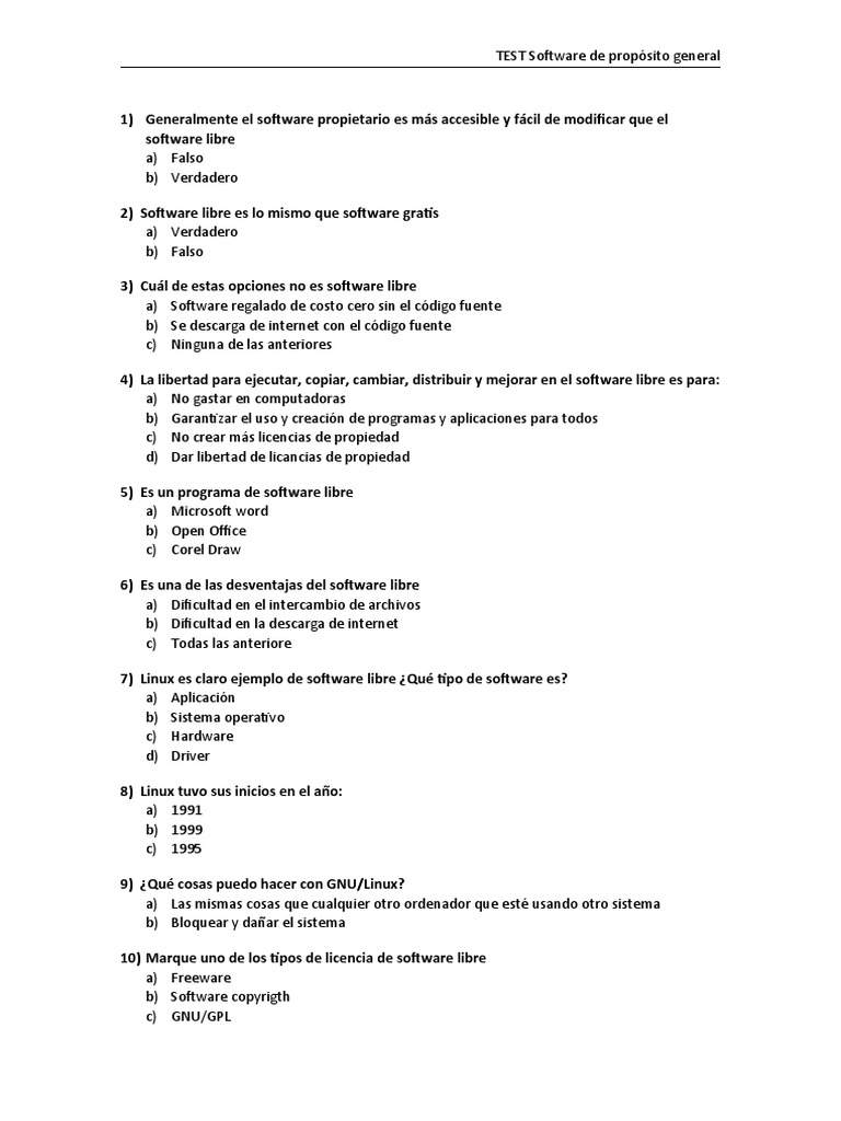 7) Linux es claro ejemplo de software libre ¿Qué tipo de software es?