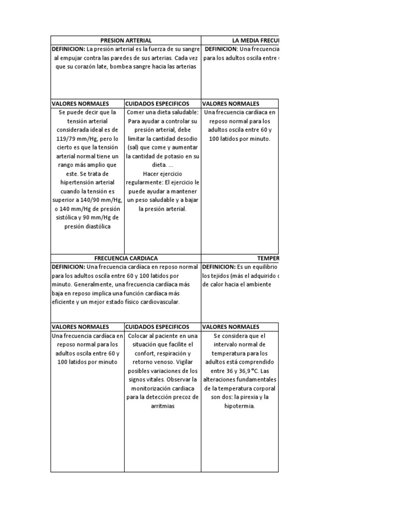 CUIDADOS ESPECIFICOS VALORES NORMALES CUIDADOS ESPECIFICOS