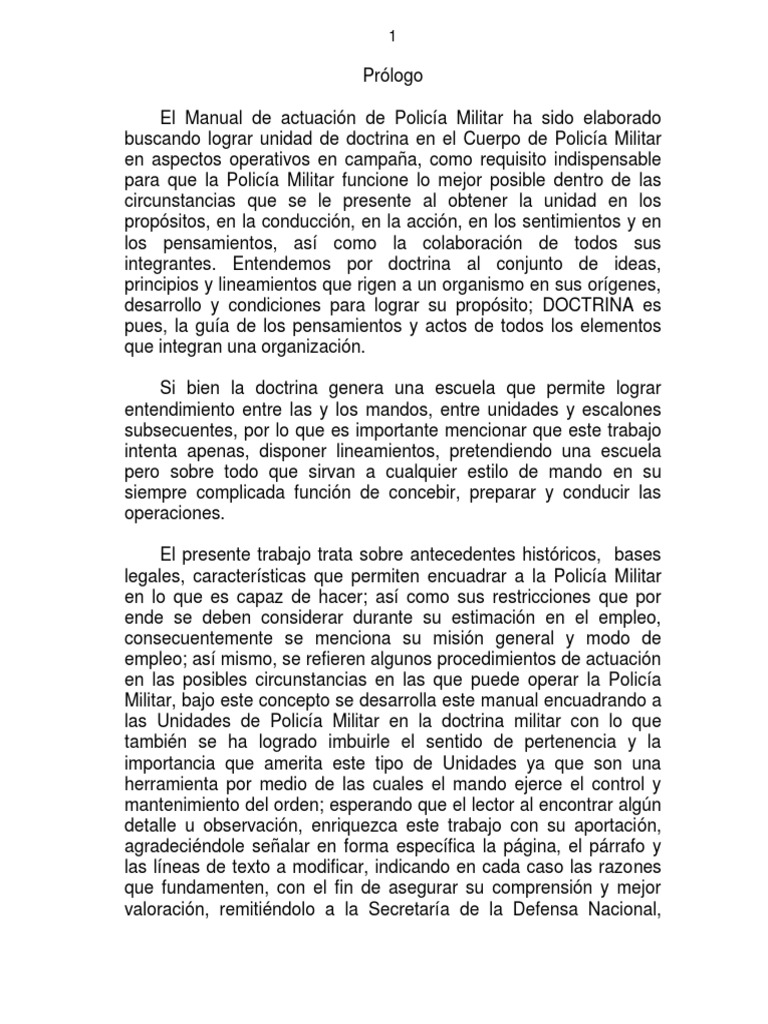 generales de la Policía Militar se aplicarán de forma mínima, en