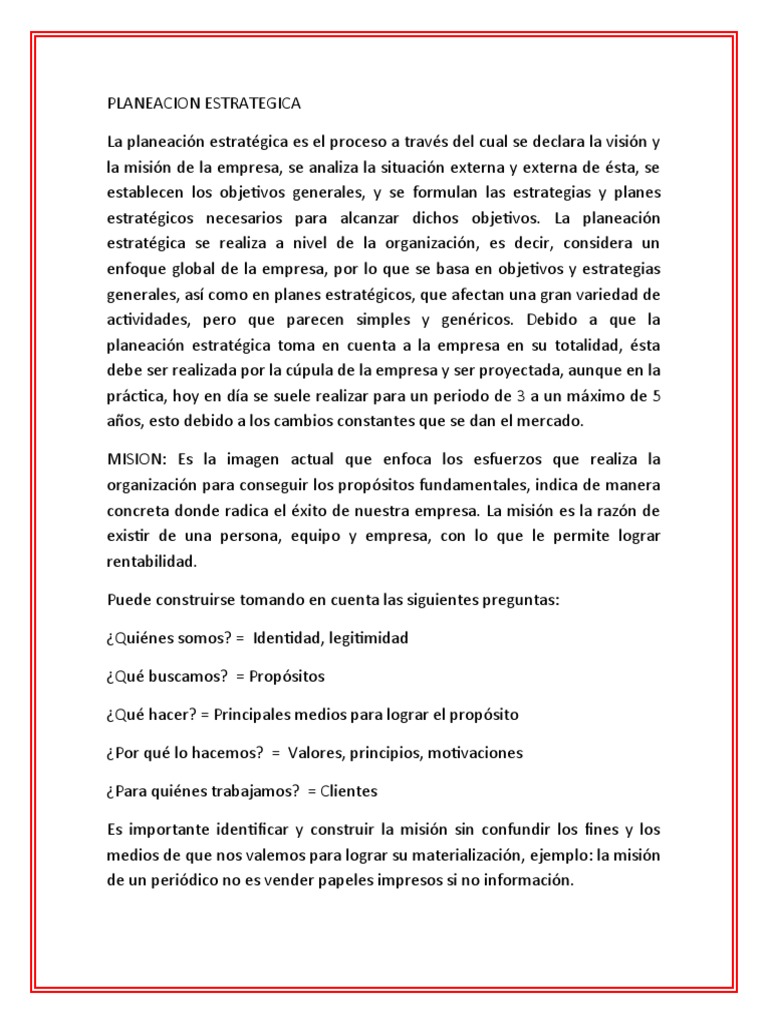 estratégicos necesarios para alcanzar dichos objetivos. La planeación