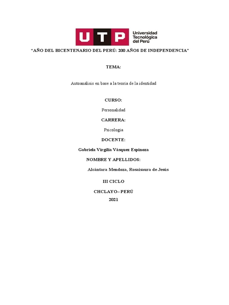 Autoanálisis en base a la teoría de la identidad
