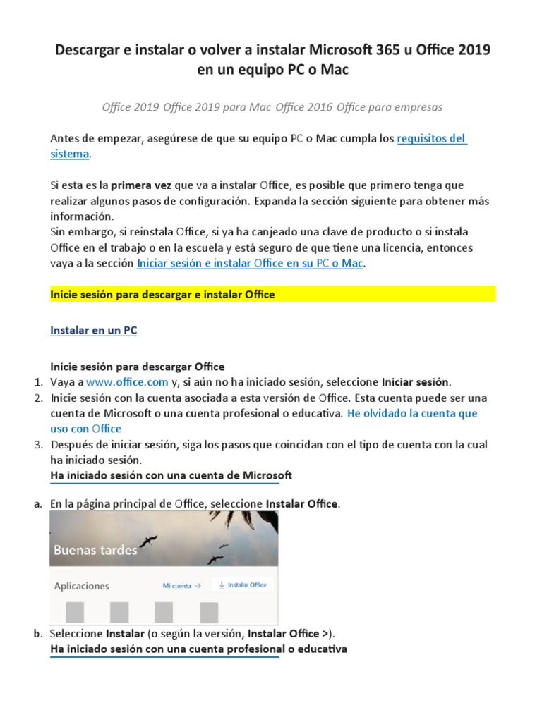 vaya a la sección Iniciar sesión e instalar Office en su PC o Mac.