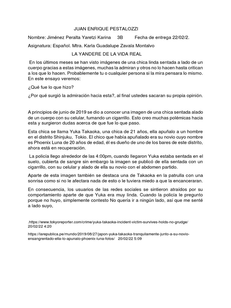 comportamiento aparte de que Yuka era muy linda. Cuando la policía le pregunto
