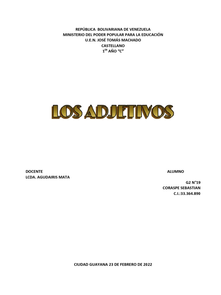clasifi cación de los adjeti vos, su género, número y grado, incluido ejemplos prácti cos,