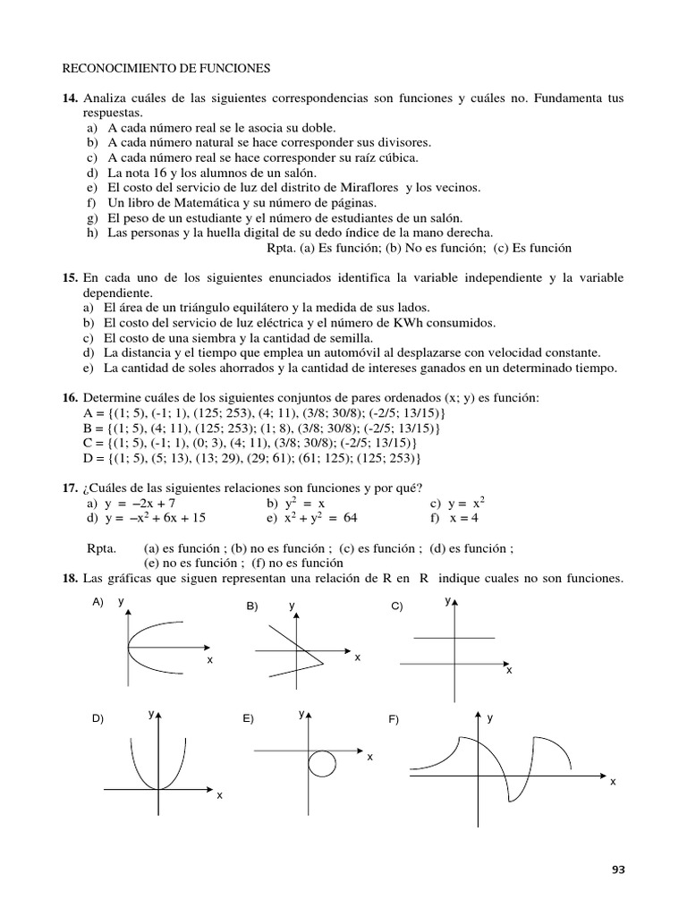 14. Analiza cuáles de las siguientes correspondencias son funciones y cuáles no. Fundamenta tus