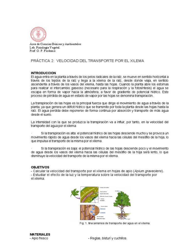 PRÁCTICA 2: VELOCIDAD DEL TRANSPORTE POR EL XILEMA
