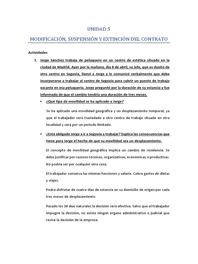 ▪ ¿Está obligado Jorge a ir a Segovia a trabajar? Explica las consecuencias que