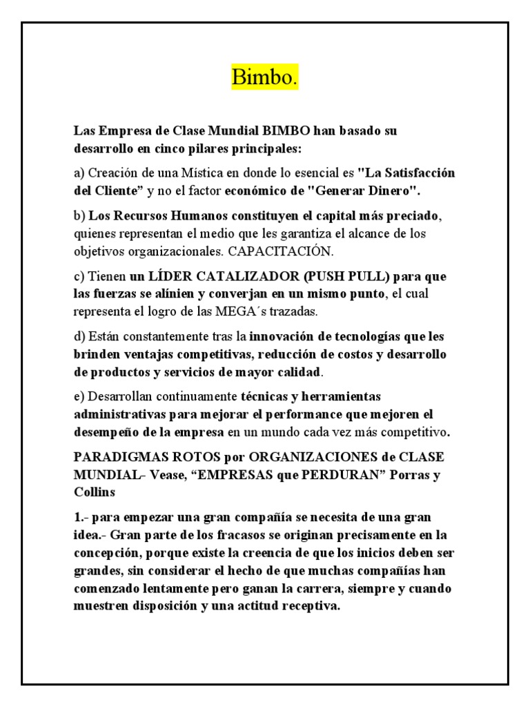 Las Empresa de Clase Mundial BIMBO han basado su