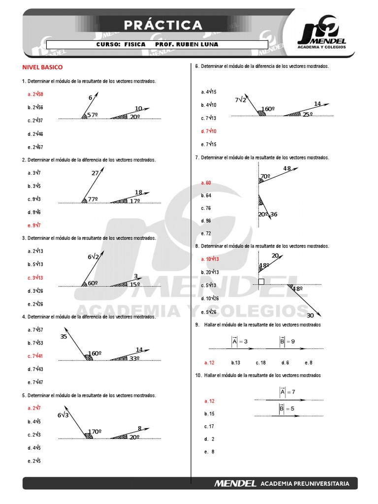 NIVEL BASICO 6. Determinar el módulo de la diferencia de los vectores mostrados.