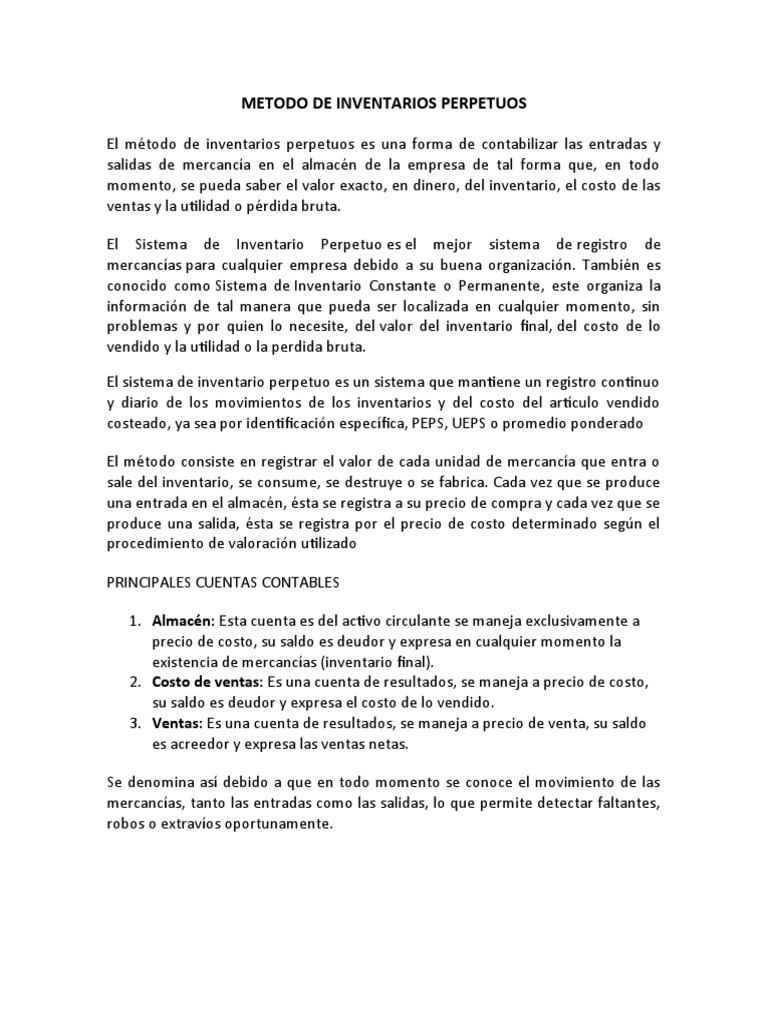 El sistema de inventario perpetuo es un sistema que mantiene un registro continuo