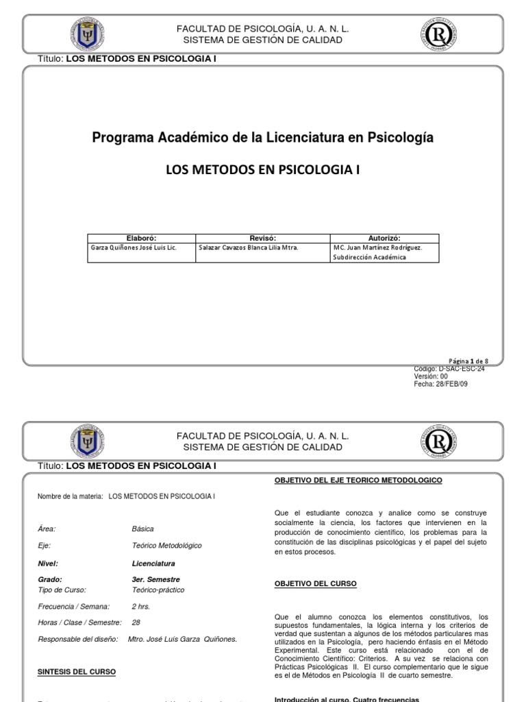 Responsable del diseño: Mtro. José Luís Garza Quiñones. utilizados en la Psicología, pero haciendo énfasis en el Método